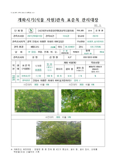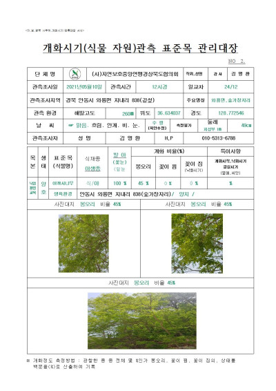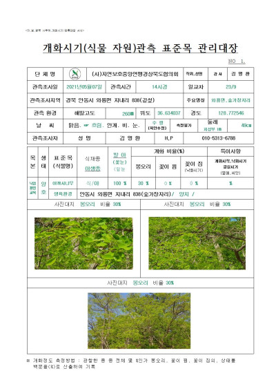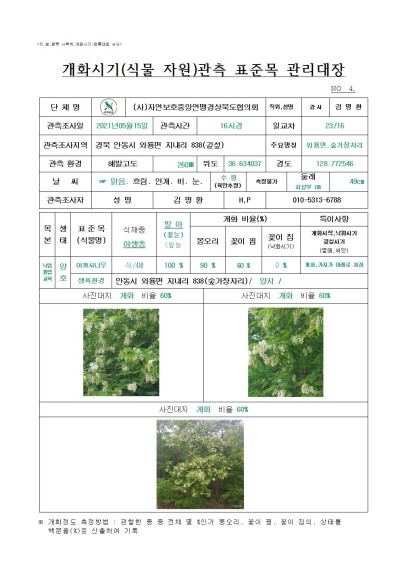 안동시 아카시나무 관측조사